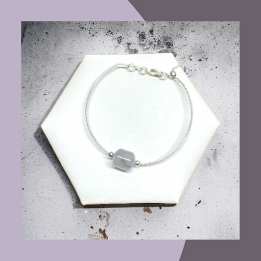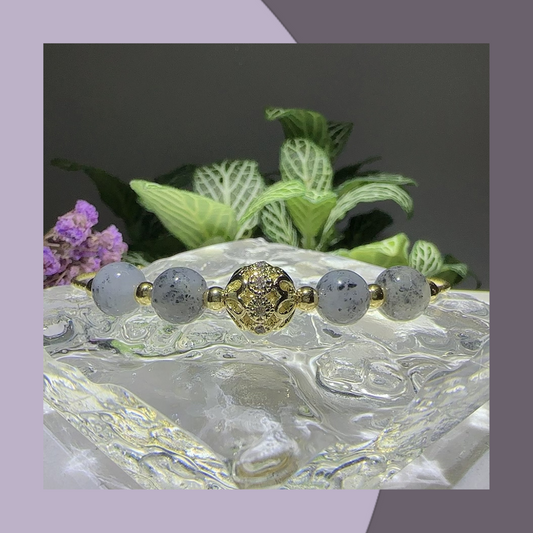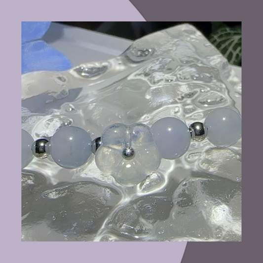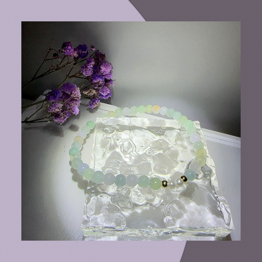 <自家系列> 玻璃冰花配糯冰種紫翡翠手鏈 · 天然緬甸翡翠 | M03714