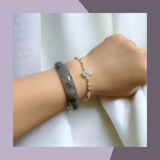 芝麻糊冰烏雞翡翠手環 | 天然緬甸翡翠 M03807