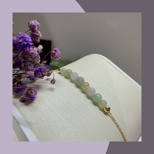 <自家系列> 多彩圓珠翡翠手鏈 · 天然緬甸翡翠 | M03008