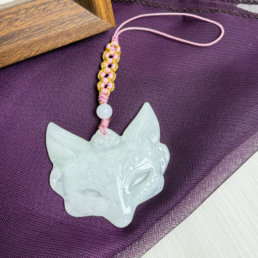 白翡翠九尾狐掛飾 • 天然緬甸翡翠
