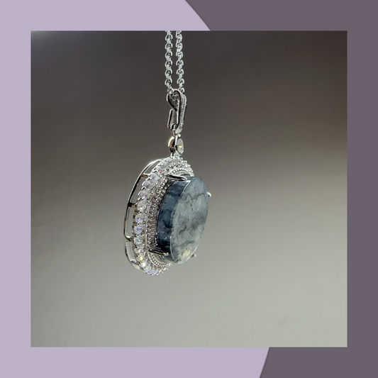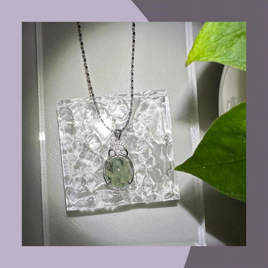 冰烏雞蛋面銀鑲翡翠吊墜頸鏈 · 天然緬甸翡翠| M01807
