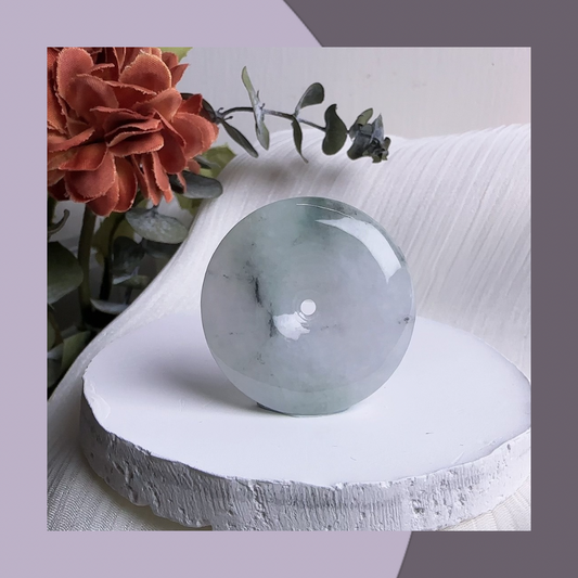 烏雞帶綠翡翠平安扣 · 天然緬甸翡翠| M08805