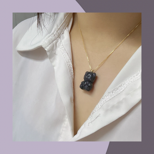 黑烏雞立體熊仔翡翠 · 天然緬甸翡翠| M01810