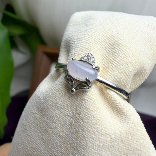 冰紫翡翠蛋面銀銀戒指· 天然緬甸翡翠 | M06722