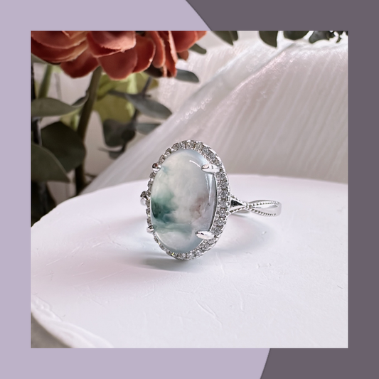 冰隨形蛋面淡綠翡翠戒指 · 天然緬甸翡翠 | M06905