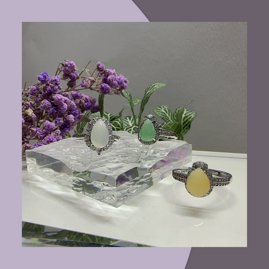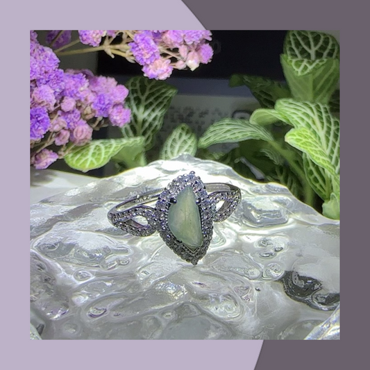 水滴形蛋面翡翠戒指💍 天然緬甸翡翠| M06904