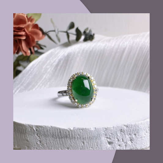 冰綠蛋面翡翠戒指 · 天然緬甸翡翠| M06408