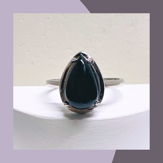 水滴形墨翠簡鑲戒指 · 天然緬甸翡翠| M06812