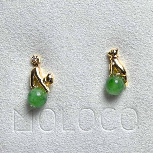 冰綠翡翠貓咪耳環 · 天然緬甸翡翠 | M05413