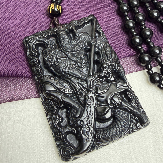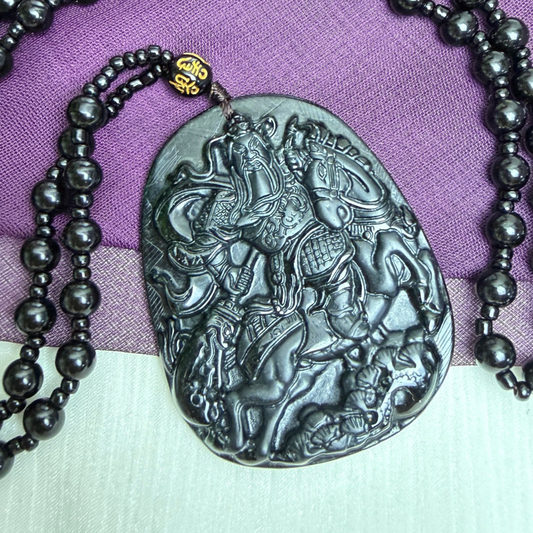 墨翠關公牌長頸繩 · 天然緬甸翡翠| M01833