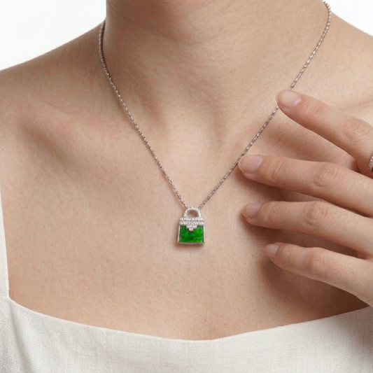 冰晴水梯形無事牌翡翠頸鏈· 天然緬甸翡翠 | M01621