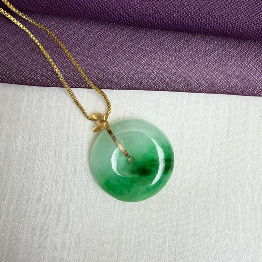 飄陽綠翡翠平安扣(18k扣頭)· 天然緬甸翡翠 | M014151