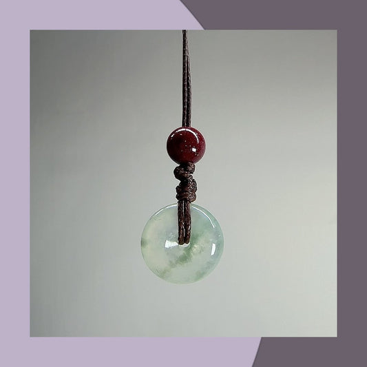 飄花玻璃冰種平安扣頸繩 · 天然緬甸翡翠| M014109