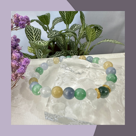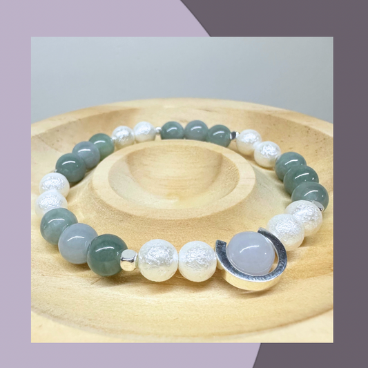 <自家系列> 清新色系多寶翡翠配珍珠手串•天然緬甸翡翠 |M03009