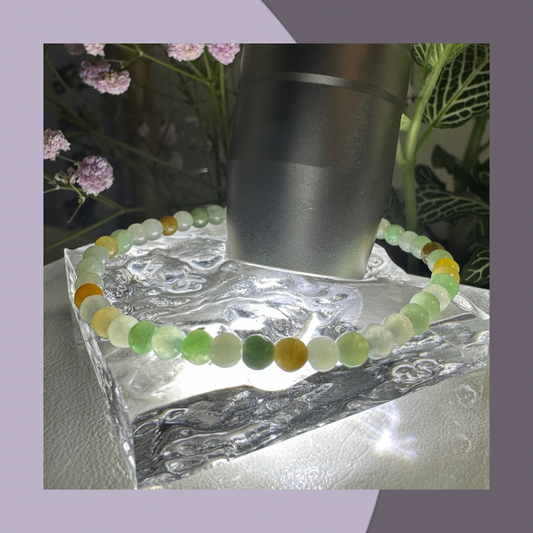 <自家系列> 玻璃冰花配糯冰種紫翡翠手鏈 · 天然緬甸翡翠 | M03714