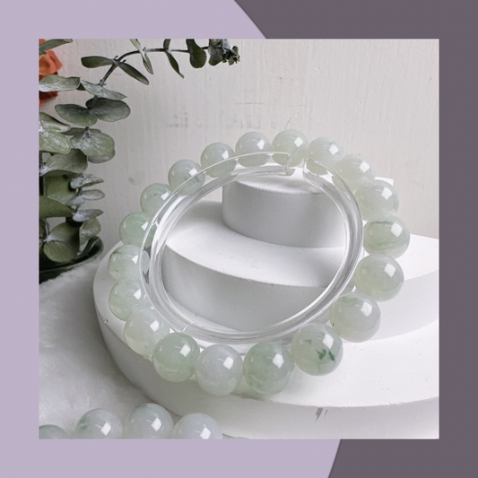 冰淡綠翡翠單珠白棉珍珠翡翠手串 · 天然緬甸A貨 | M03413