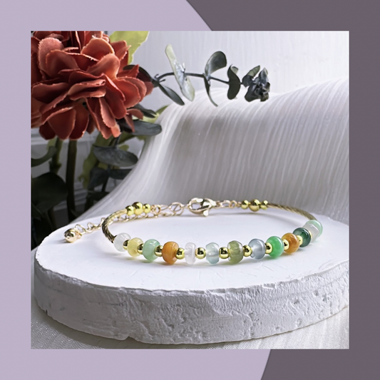 彩虹色系翡翠手串(配木珠) · 天然緬甸翡翠| M03017