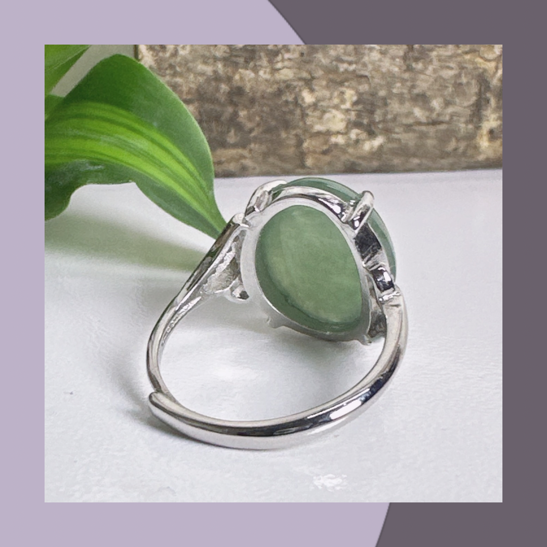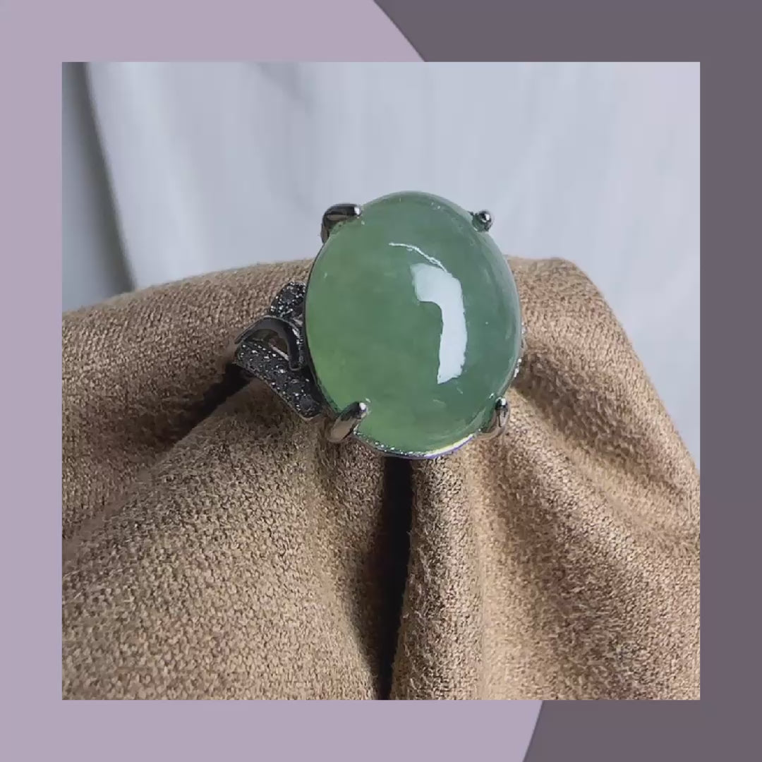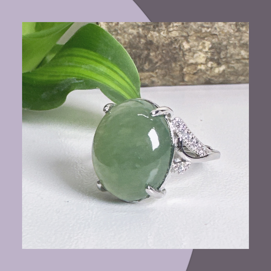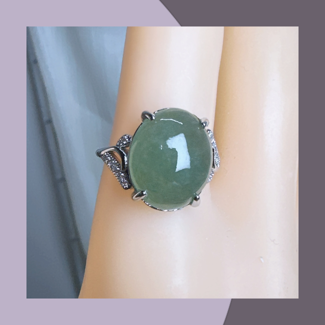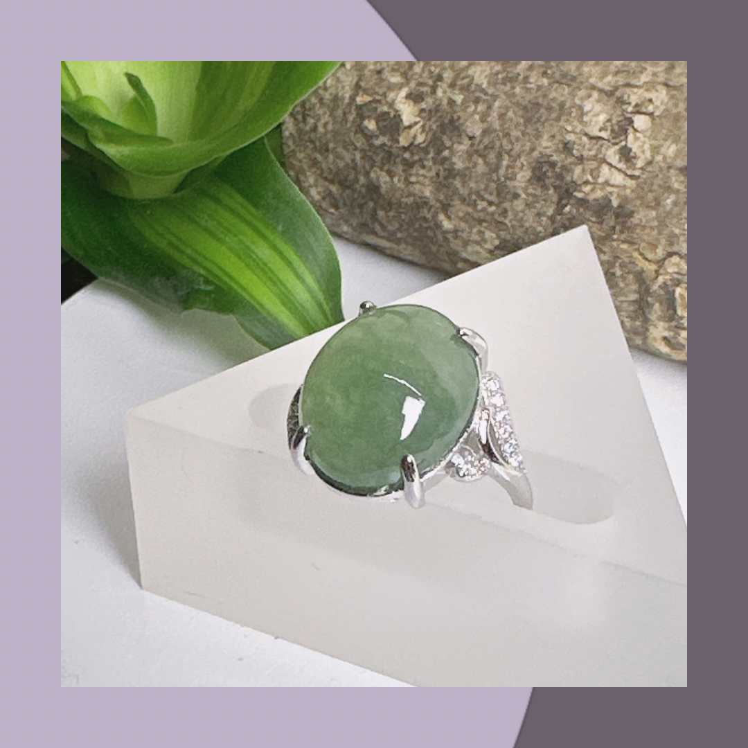 冰綠蛋面翡翠戒指 · 天然緬甸翡翠| M06408