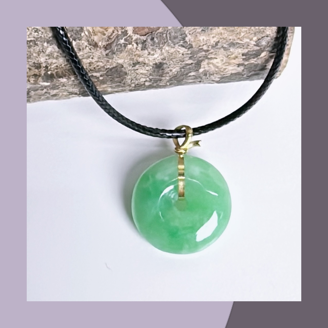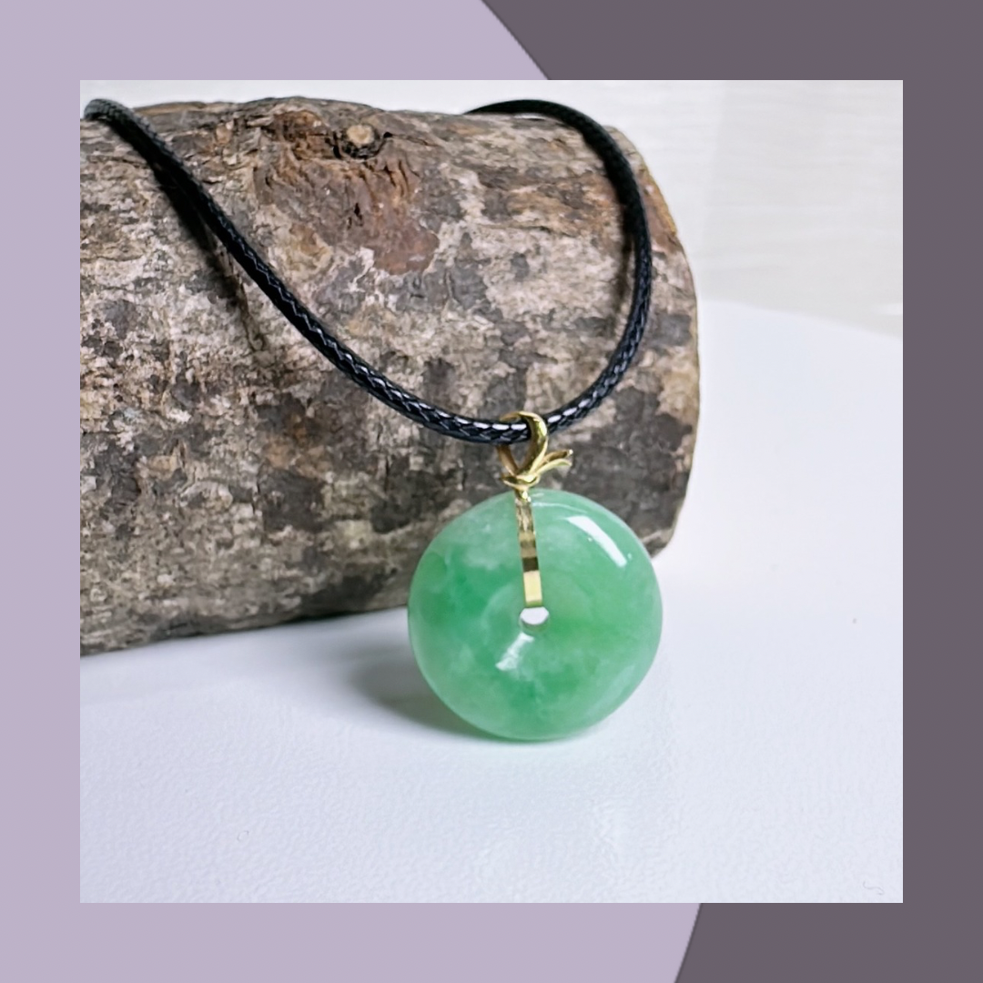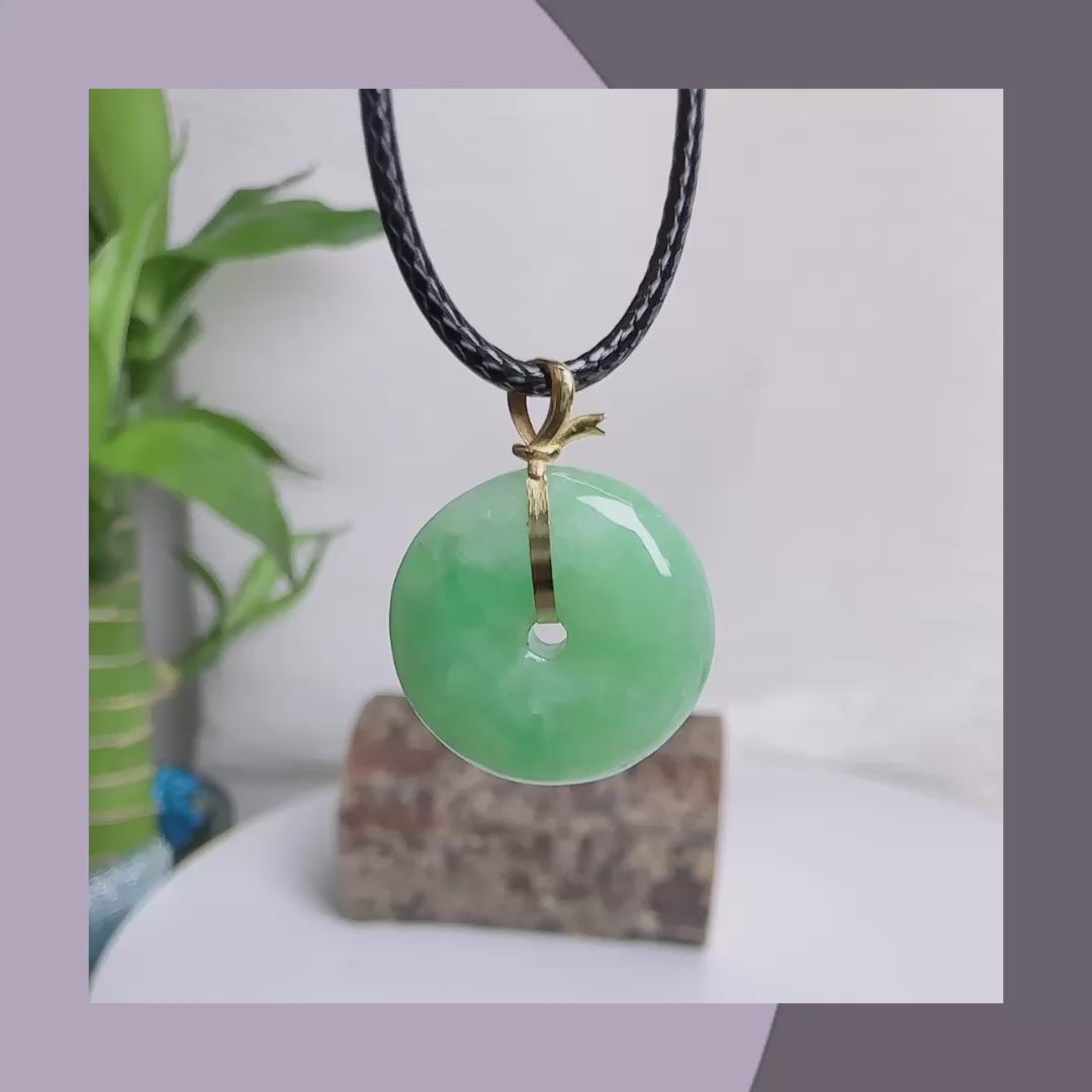 果綠翡翠平安扣(18k扣頭)· 天然緬甸翡翠 | M014150