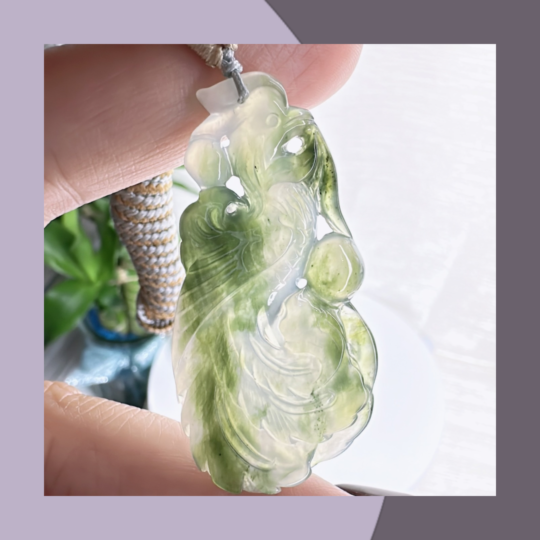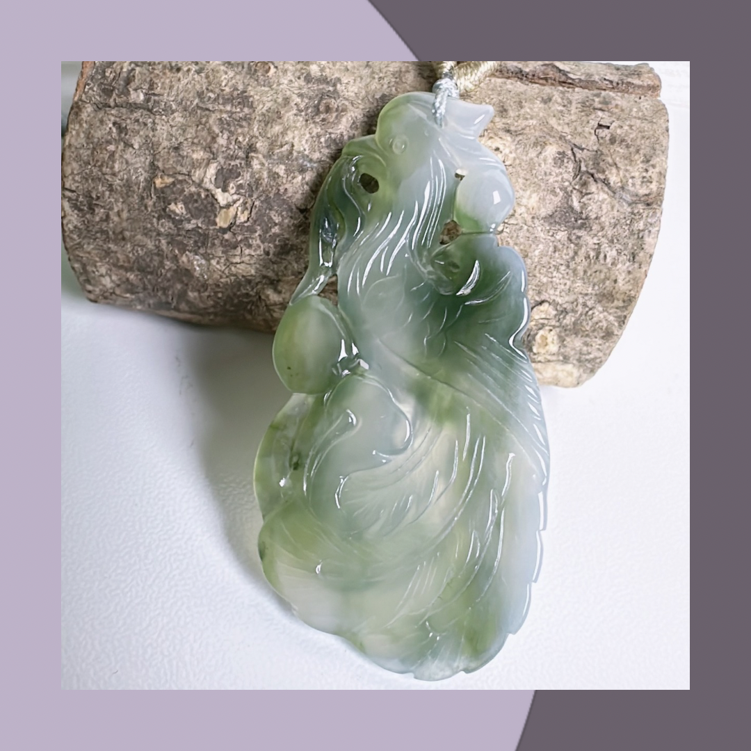 冰綠翡翠鳳牌頸繩 · 天然緬甸翡翠 | M014133