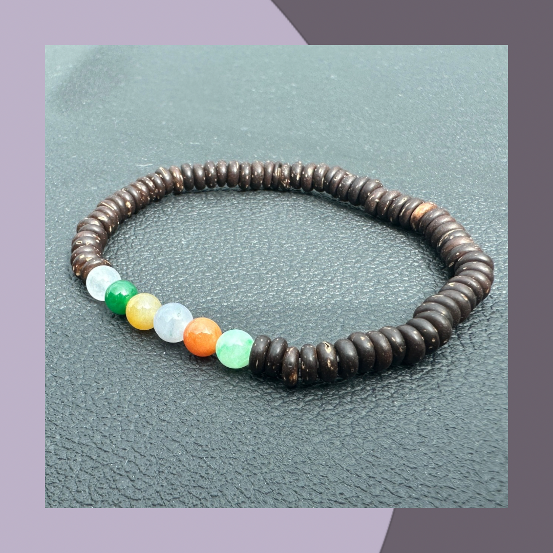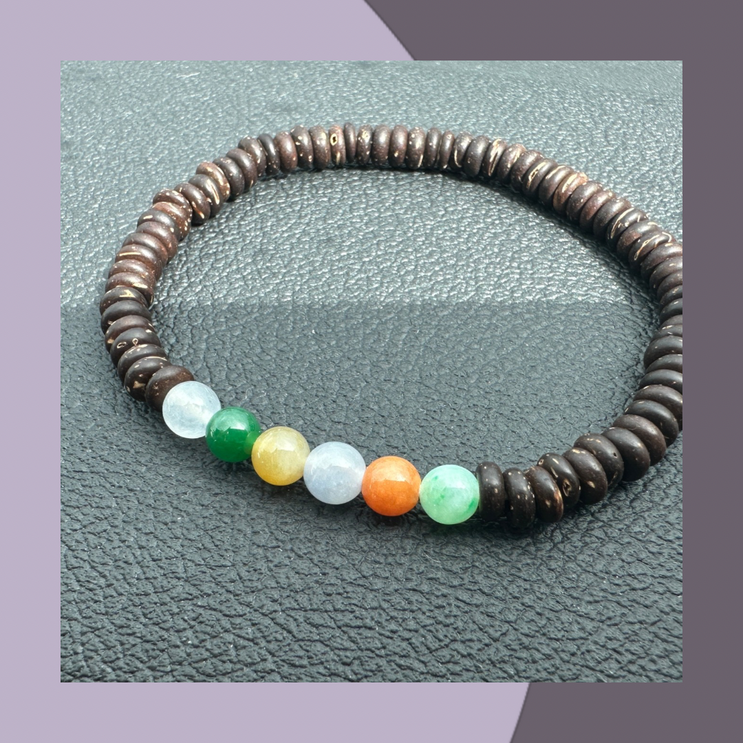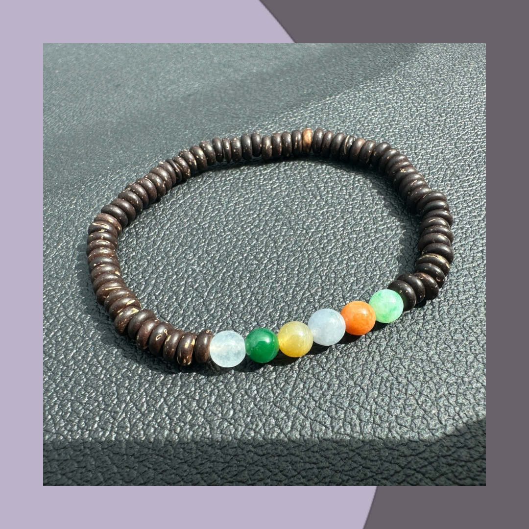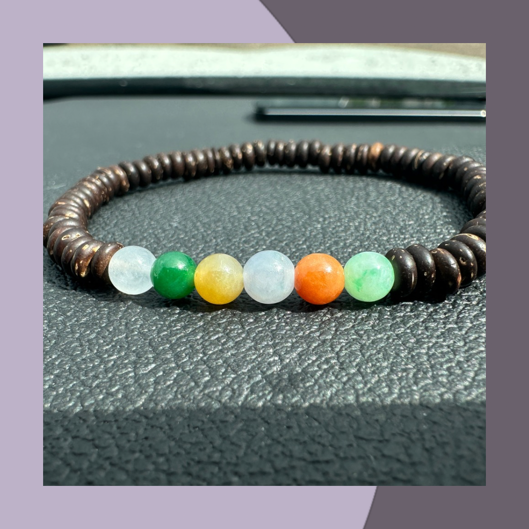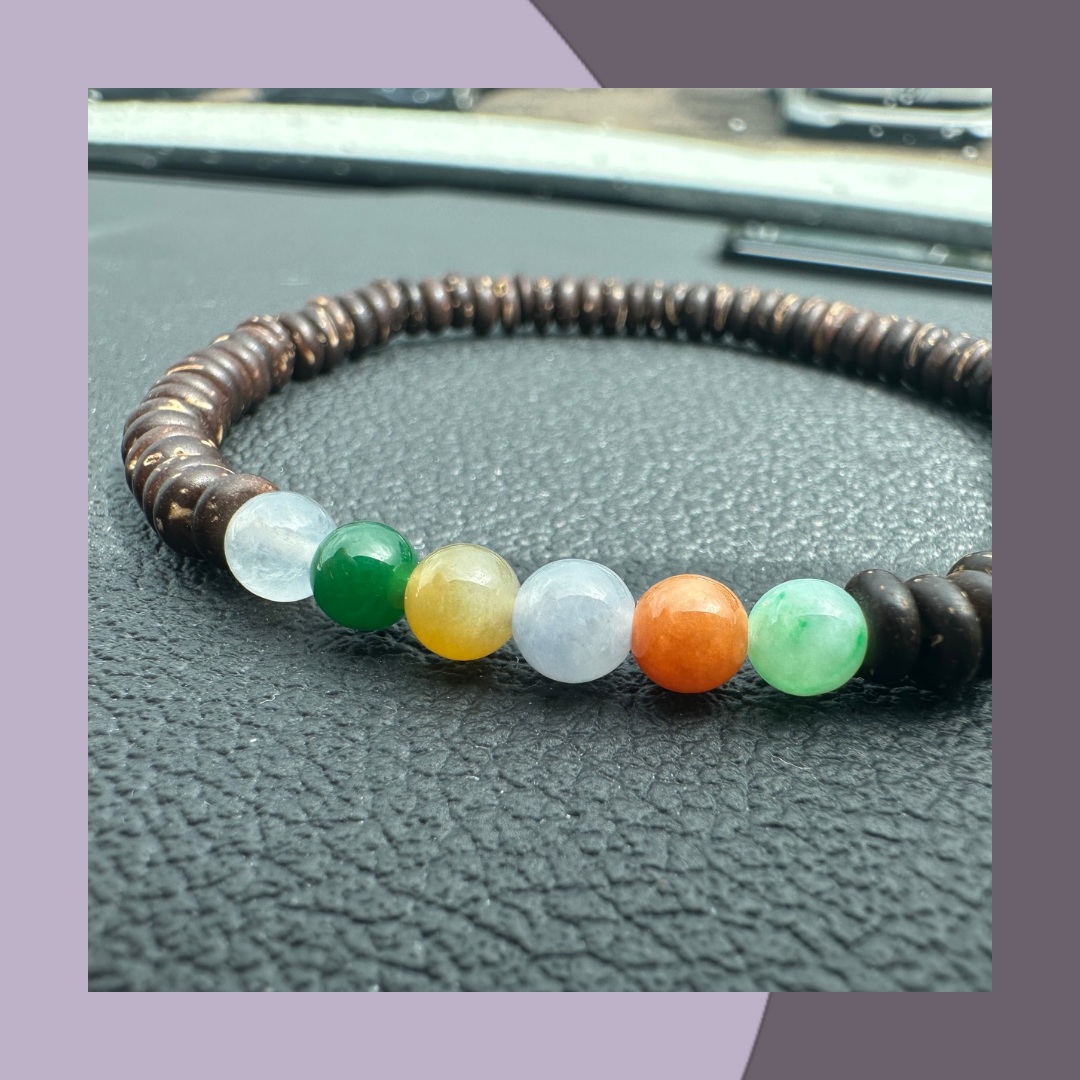 彩虹色系翡翠手串(配木珠) · 天然緬甸翡翠| M03017