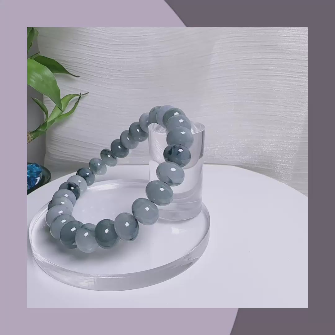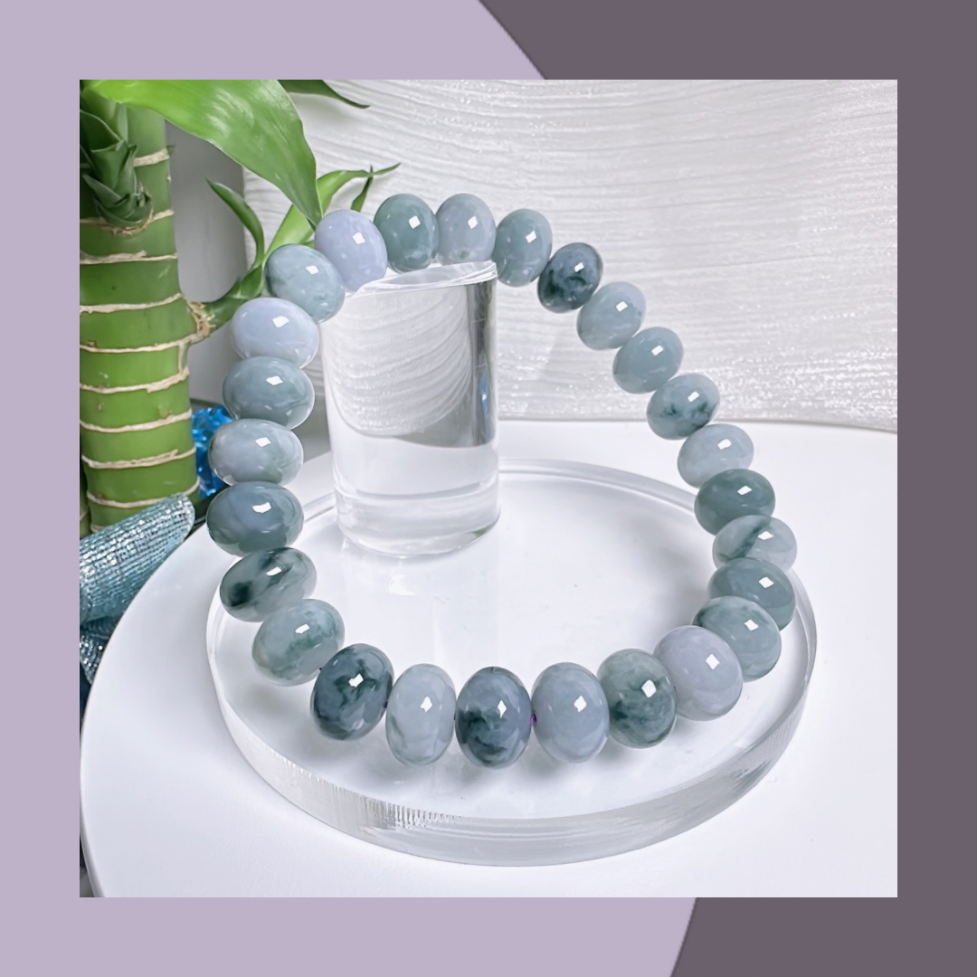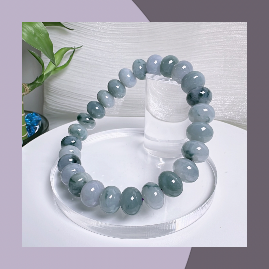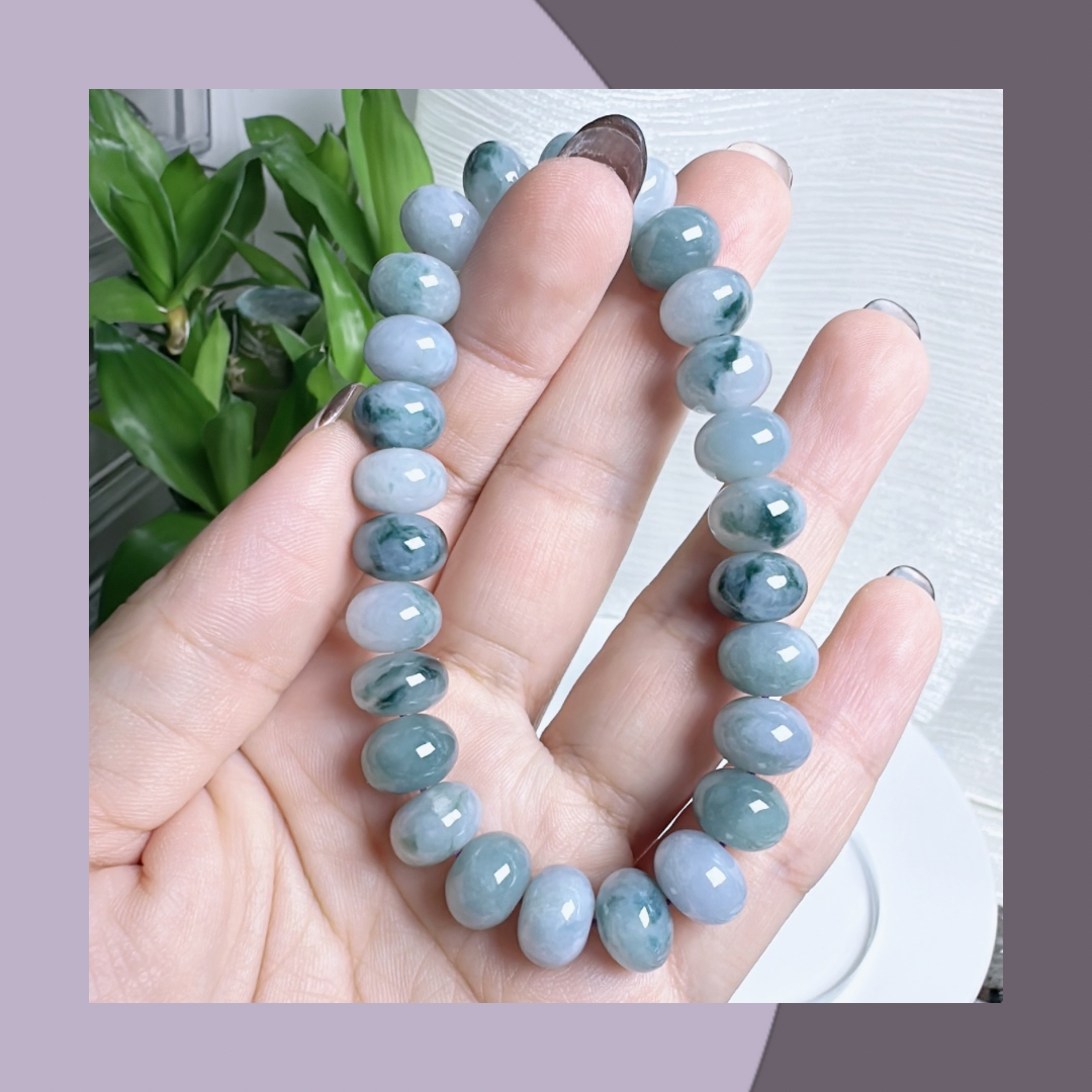 紫底飄花翡翠鼓珠手串 •天然緬甸翡翠| M02719