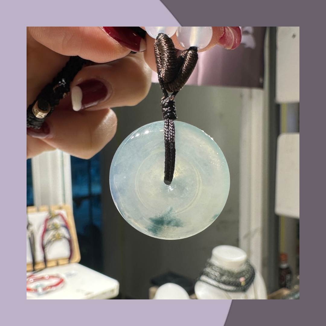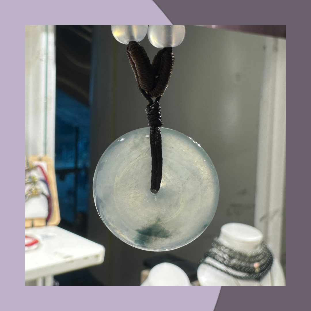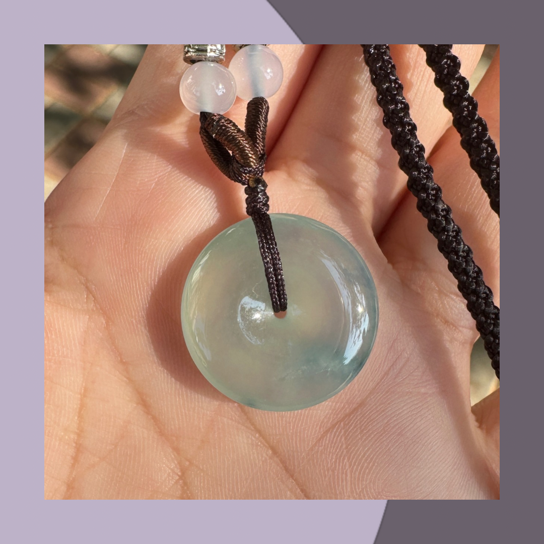 高冰飄花平安扣吊墜頸繩 · 天然緬甸翡翠| M01908